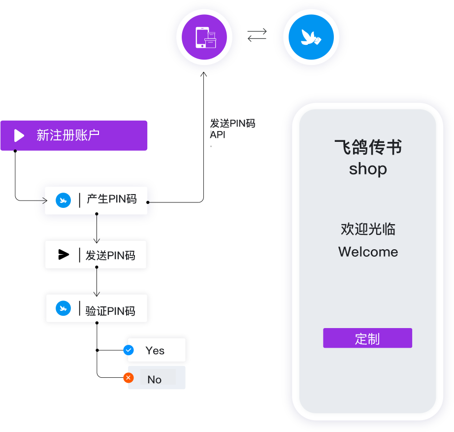 通过API对接方式发送催付短信、付款关怀、物流关怀、退款关怀等短信,提升下单转化率和客户体验。