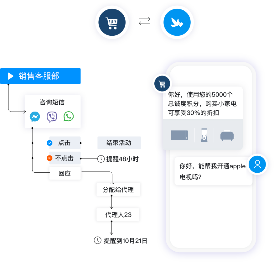在新品上市和店庆活动等促销活动中,通过短信向客户透传新品信息、优惠打折信息,刺激客户的购买欲。
