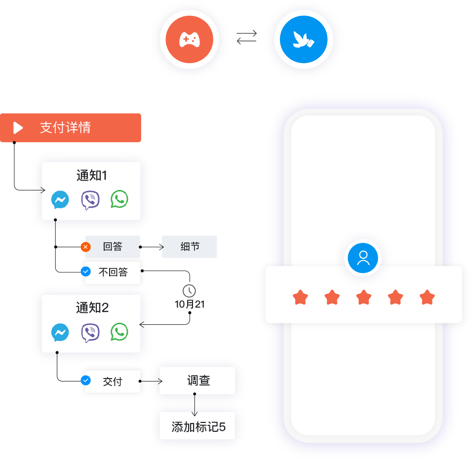 通过最流行的渠道吸引客户-从短信,电子邮件和语音到聊天应用。